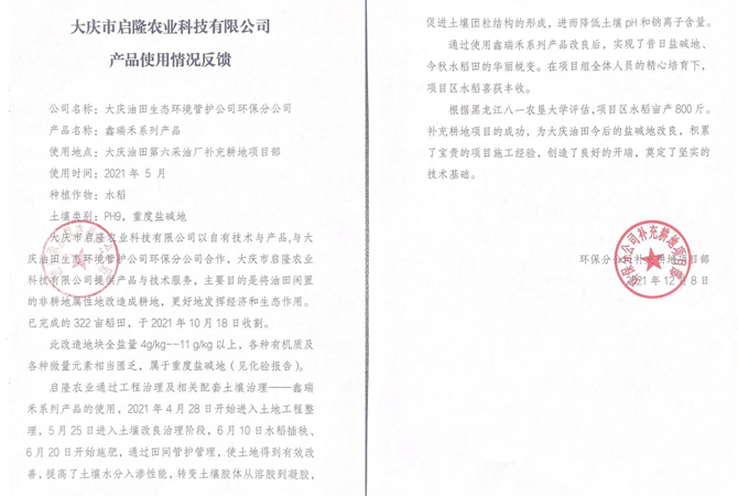 與多所高校、研究院、各大種業(yè)企業(yè)合作種植改良鹽堿地水稻。在黑龍江、吉林、內(nèi)蒙古等地有多處示范基地。在新疆等地區(qū)種植草木,環(huán)境綠化等工程。幾年來,啟隆人大力弘揚(yáng)“創(chuàng)新、堅韌、拼搏、開拓”的企業(yè)精神,在研發(fā)上勇攀高峰。大慶啟隆 的企業(yè)宗旨是“誠信于鹽堿地的朋友,服務(wù)于鹽堿地的朋友”,努力為鹽堿地改良做出積極的貢獻(xiàn)。